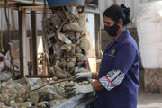 2019 gick vi samman med Plastics for Change för att grunda ett nytt Community Fair Trade-partnerskap relaterat till att köpa in återvunnen plast från Bengaluru i Indien. Plastics for Change arbetar med så kallade sopplockare i Indien som ofta är daliter eller så kallade kastlösa - den lägsta klassen i Indiens kastsystem. Denna grupp av människor är mycket utsatta när det gäller diskriminering och dåliga arbetsförhållanden. De har hjälpt kvinnor som Annamma och som varit sopplockare sedan hon var barn. Nu är hon chef för ett sophanteringscenter för torrt avfall och har ett antal anställda. Hon har dessutom haft möjlighet att låta sin dotter gå en plastingenjörsutbildning.