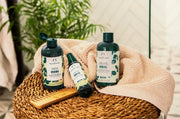hittills – flaskorna och burkarna (inte locken) är återvinningsbara och tillverkade av återvunnen plast, inklusive återvunnen Community Fair Trade-plast från gatorna i Bengaluru, Indien.
