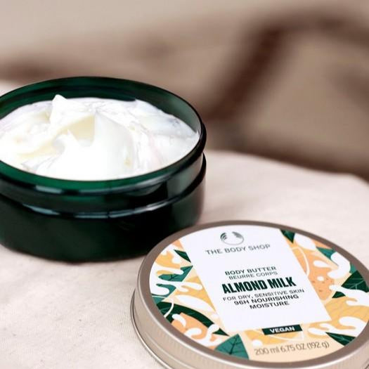 Almond Milk Body Butter återfuktar nu huden i 96 timmar och 95 % av ingredienserna är av naturligt ursprung – som tre Community Fair Trade-ingredienser: mandelmjölk från Spanien, handgjort sheasmör från Ghana och sesamolja från Nicaragua. Perfekt för att vårda torr och känslig hud så att den känns mjukare och smidigare och får en naturligt fin glow.