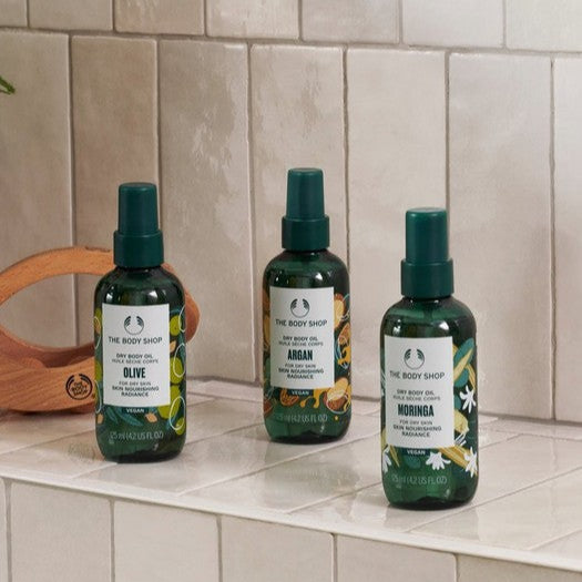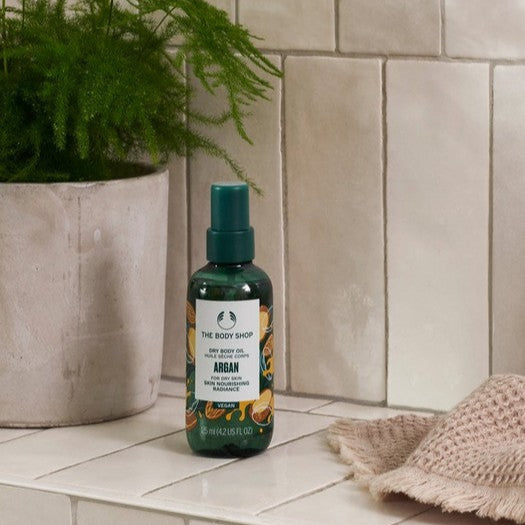 Ge huden en underbar lätt lyster med vår Argan Dry Body Oil. Berikad med arganolja från Marocko och Community Fair Trade-olivolja från Italien, bidrar den till att hålla huden silkeslen och härligt doftande.