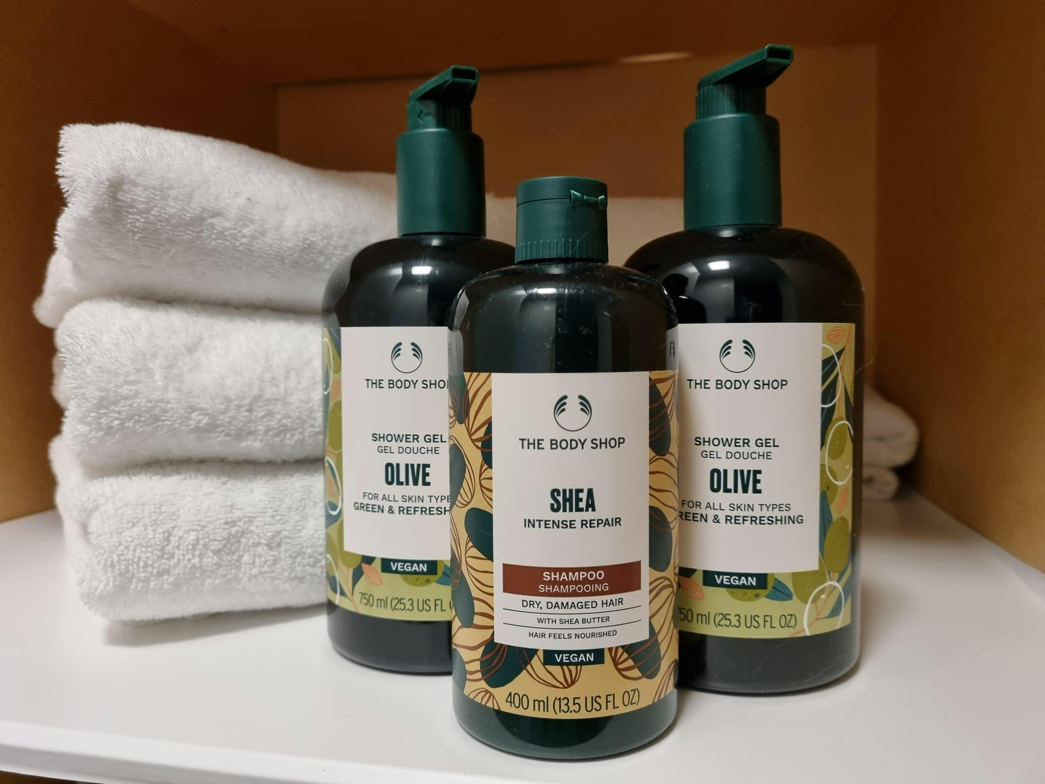 Body shop har jag handlat av i ungefär 35år. Det enda märke jag litar på, inte är testat på djur. Jag älskar Shea schampo och balsam och Oliv flytande tvål. Fick även en present när jag handlade. En mask, den gav jag till min dotter, som uppskattar små presenter. Det gick så smidigt att beställa, med paket utanför dörren.