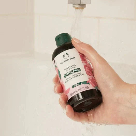 Få den vackra kroppen att känna sig uppfriskad och skinande ren med löddrande British Rose Shower Gel.