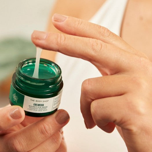 Vår nya Edelweiss Bouncy Eye Mask kyler huden under ögonen, tillför fukt och jämnar ut huden – bara fråga de 100 kvinnor som testade vår nya ögonmask i ett oberoende användartest. De är fans!*.