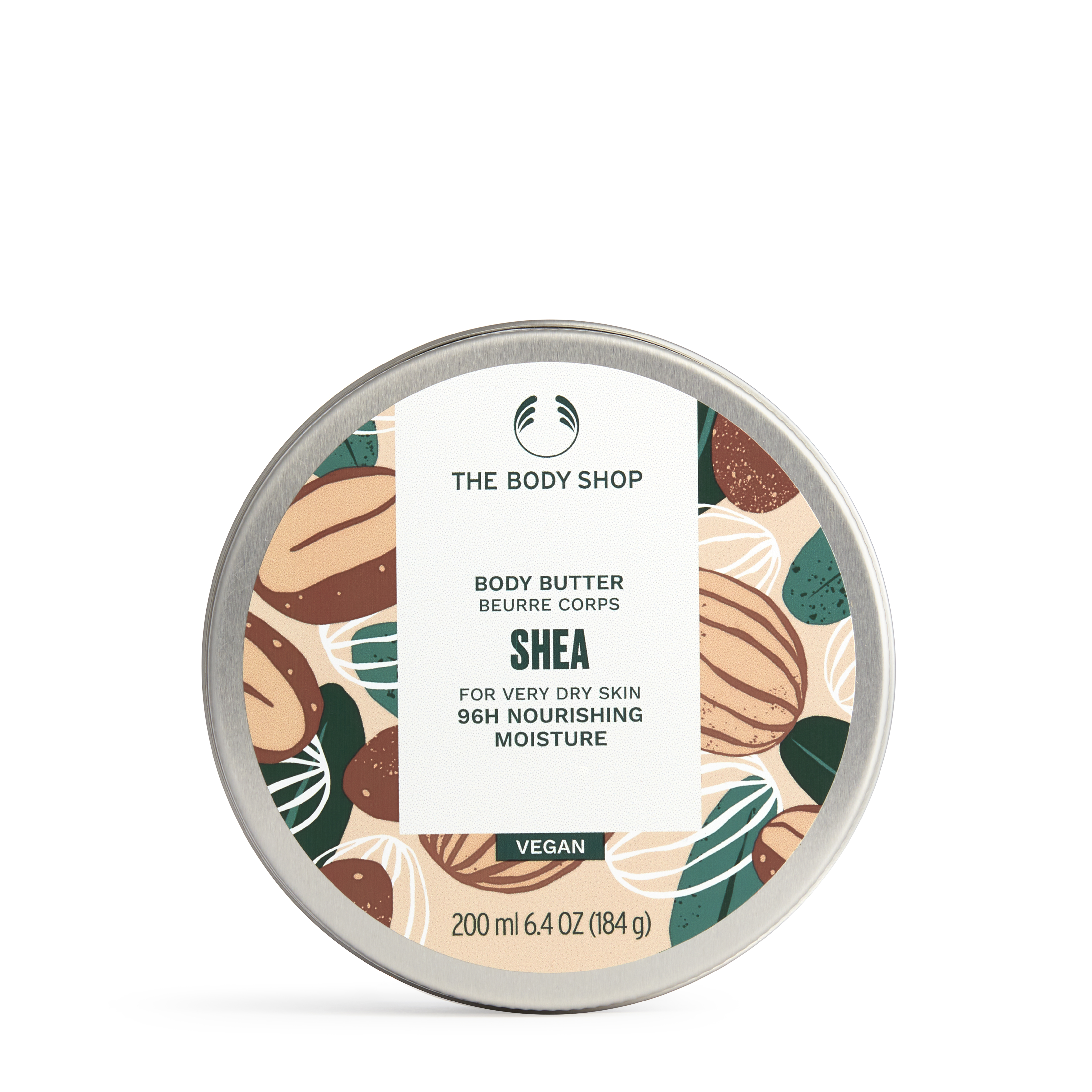 Shea Body Butter återfuktar nu huden i 96 timmar och 97 % av ingredienserna är av naturligt ursprung – som handgjort Community Fair Trade-sheasmör från Ghana och Community Fair Trade-babassuolja från Brasilien. Perfekt för att vårda mycket torr hud så att den känns mjukare och smidigare och får en naturligt fin glow.