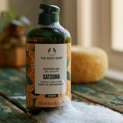 Få den vackra kroppen att känna sig uppfriskad och skinande ren med löddrande Satsuma Shower Gel.